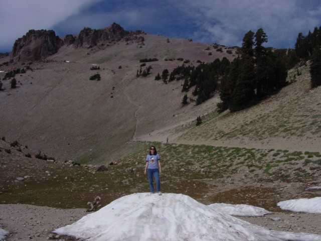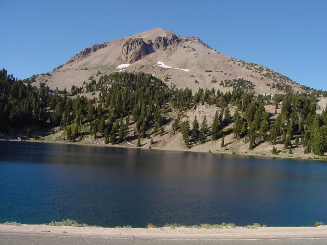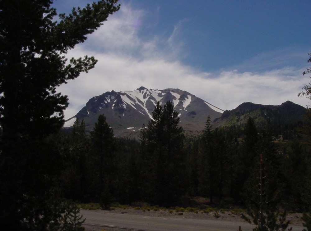 View of Lassen Peak with snow in early September