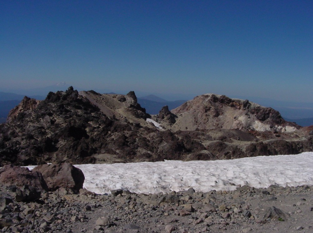 The area around the crater, filled with snow. Mount Shasta is in the background